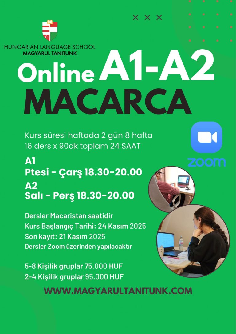 Macarca grup dersimiz ana dili Türkçe olan öğrenciler için Macarca okuma, yazma, dinleme ve konuşma becerilerini geliştirmeyi amaçlar. Grup Macarca derslerimiz online olarak yapılmaktadır. Dersler öğrencinin Macarca dil becerilerini geliştirmesine yardımcı olacak etkileşimli aktiviteler, örnekler ve pratik egzersizler içerecektir. Türk öğretmenlerden Macarca kurs almak, dil becerilerinizi geliştirerek, daha fazla fırsata erişmenize ve dünyaya açılmanıza yardımcı olacaktır.